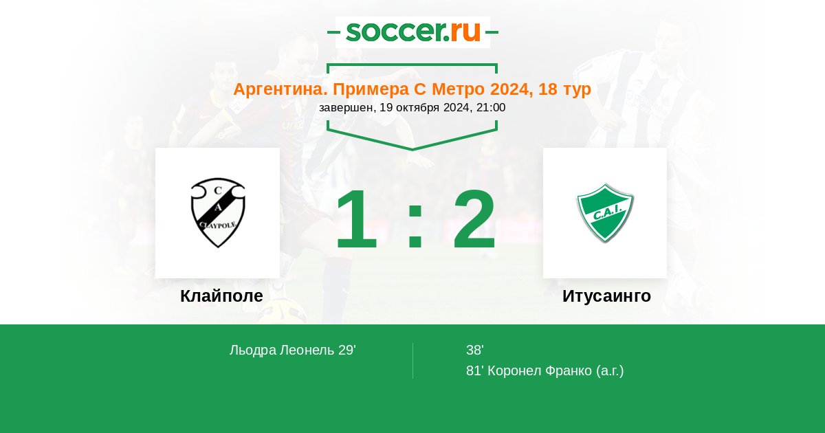 | Аргентина. Примера Д | 17 | 4 | 7 | 6 |