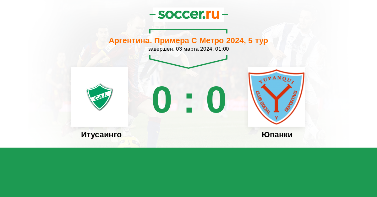 | Итусаинго | 4:3 | 0:0 | 4:3 |