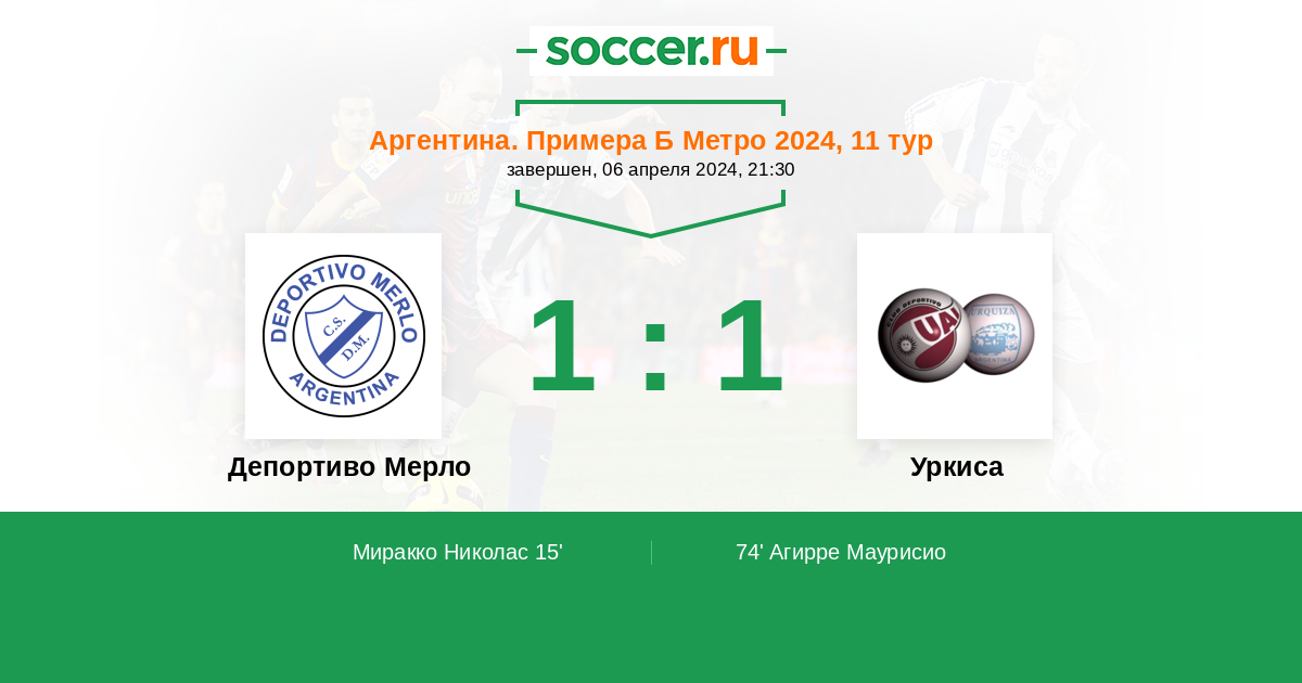 | Депортиво Мерло | 16:17 | 9:8 | 7:9 |