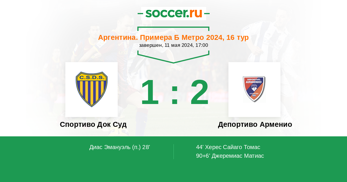| Спортиво Док Суд | 12:16 | 6:7 | 6:9 |