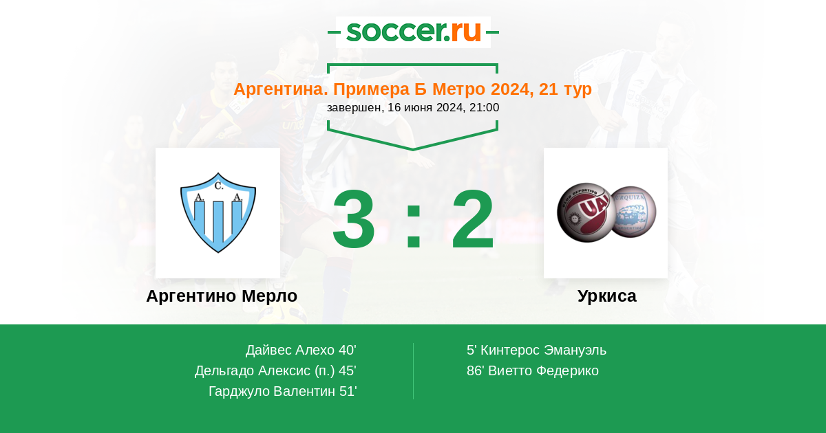 | Аргентина. Примера Б Метро | 5 | 2 | 1 | 2 |