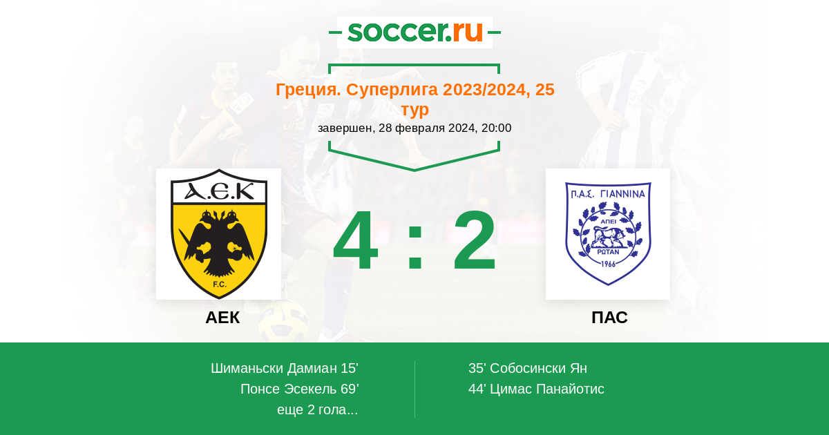 | АЕК | 54:24 | 30:11 | 24:13 |
