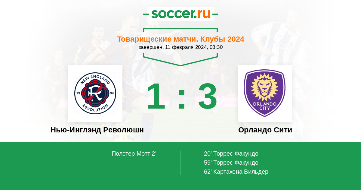 | Нью-Инглэнд Революшн | 52:49 | 23:11 | 29:38 |
