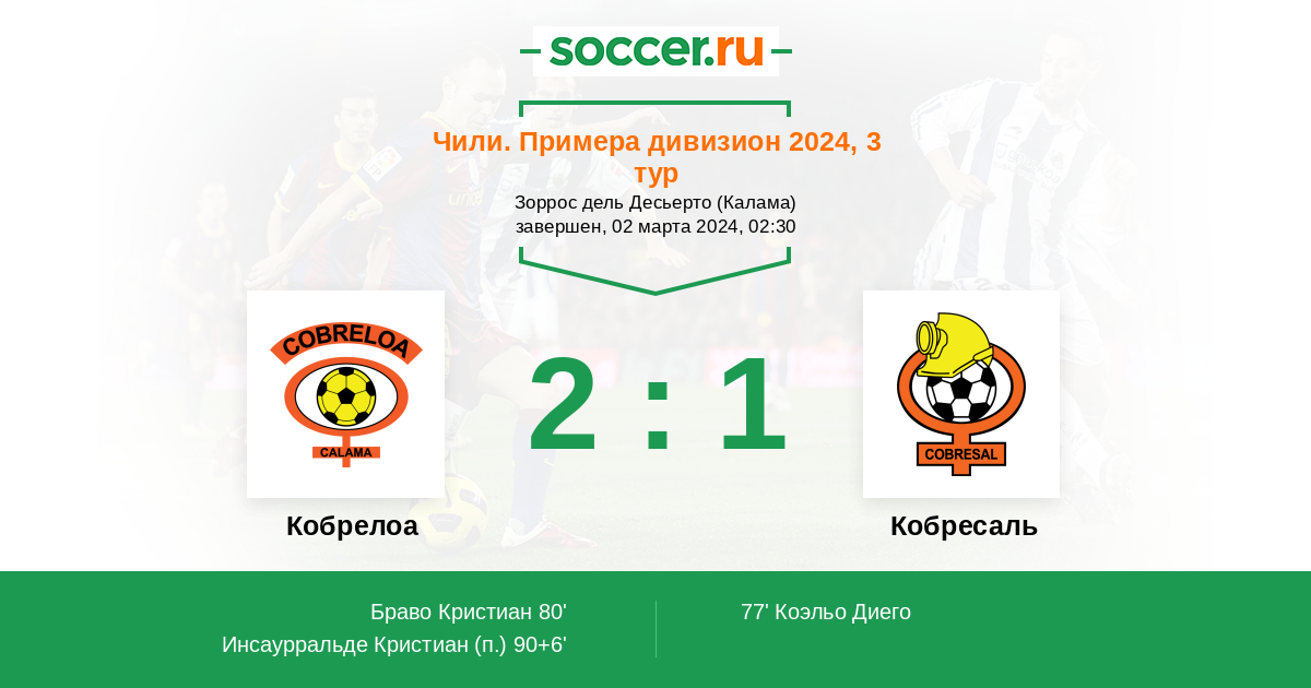 | Кобресаль | 8:6 | 6:3 | 2:3 |