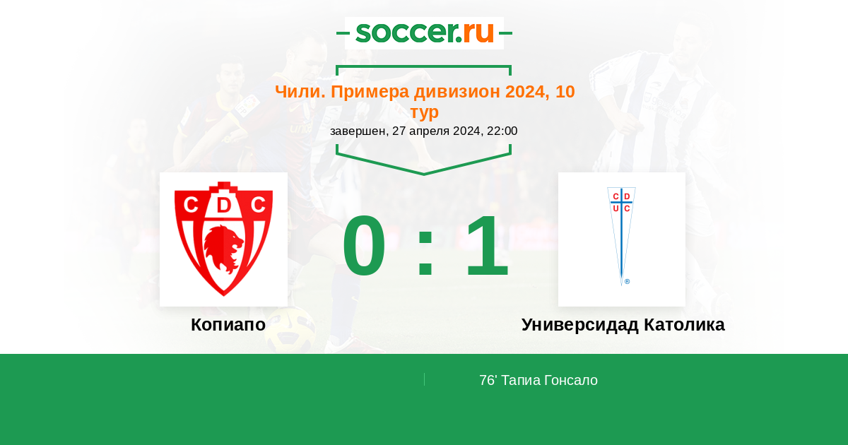 | Универсидад Католика | 10:4 | 6:3 | 4:1 |