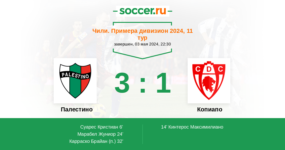 | Палестино | 6:3 | 2:0 | 4:3 |