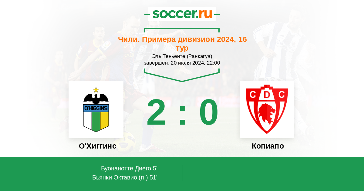 | О'Хиггинс | 6:4 | 1:1 | 5:3 |