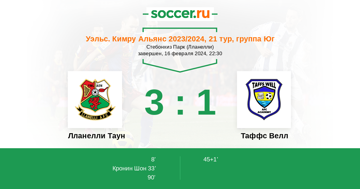 | Лланелли Таун | 15:6 | 10:1 | 5:5 |