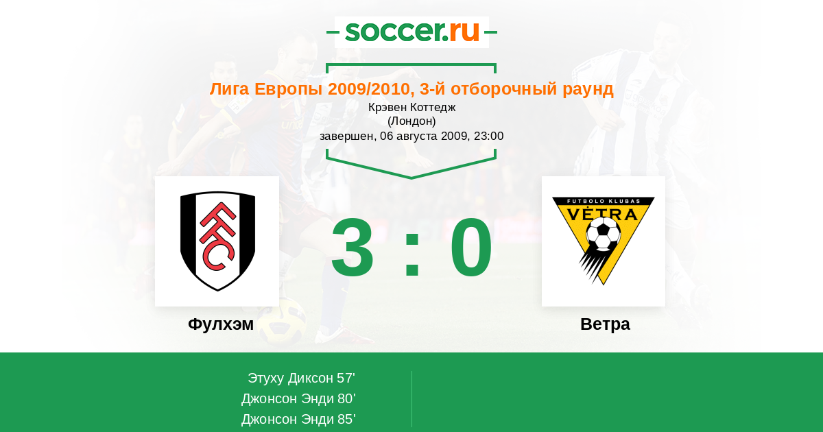 | Фулхэм | 3:0 | 0:0 | 3:0 |