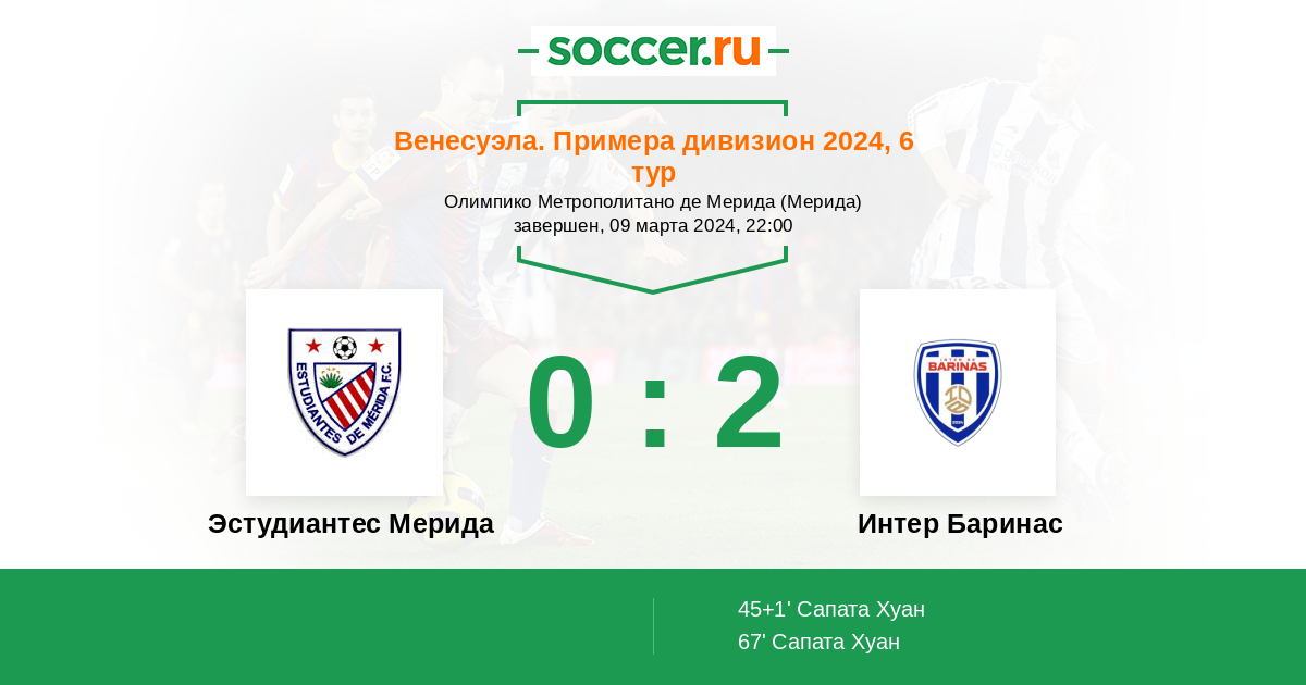 | Эстудиантес Мерида | 24:18 | 13:8 | 11:10 |