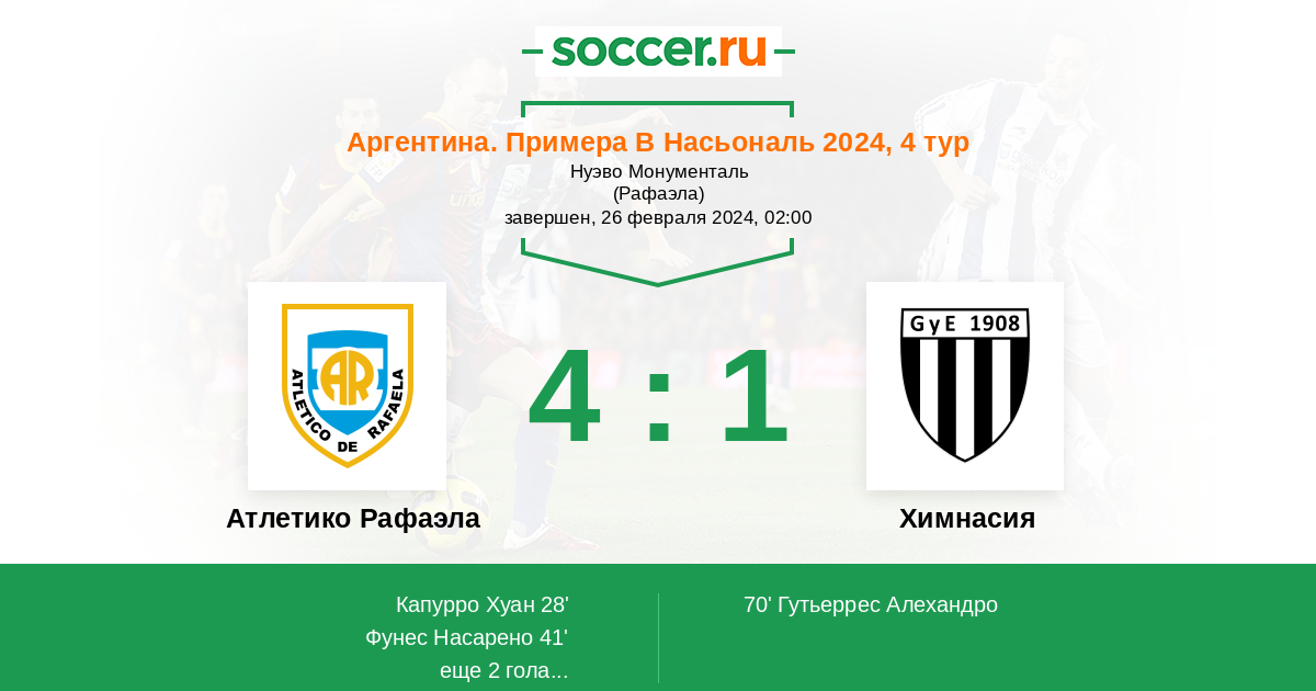 | Атлетико Рафаэла | Химнасия | |