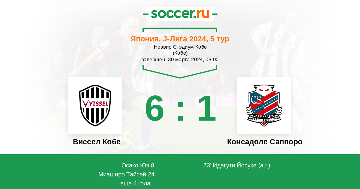 | Виссел Кобе | 56:29 | 24:10 | 32:19 |