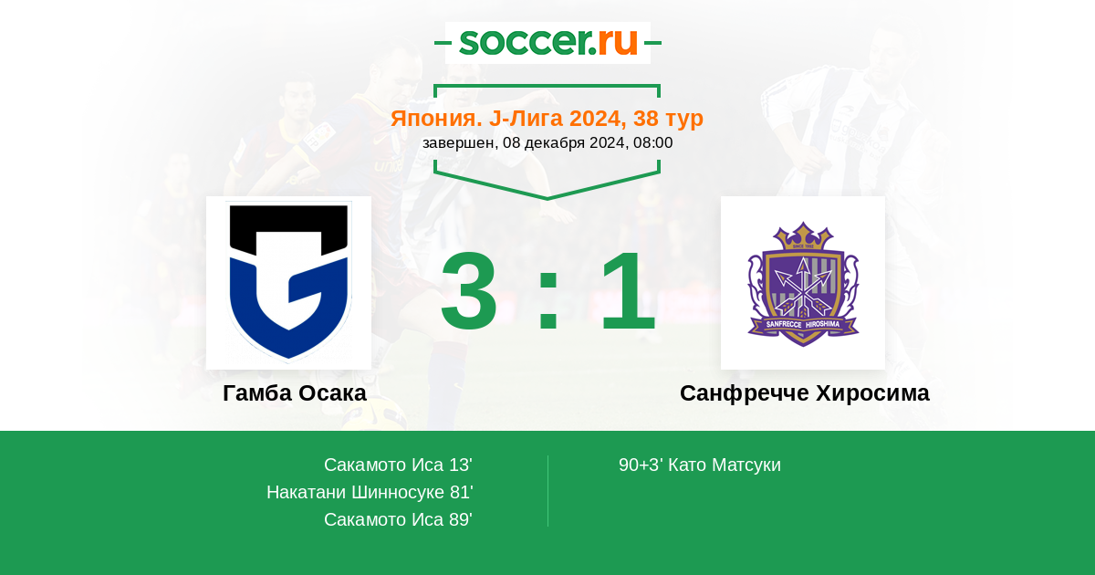| Гамба Осака | 67:65 | 36:26 | 31:39 |