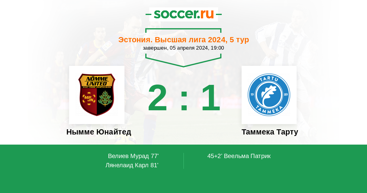 | Нымме Юнайтед | 3:5 | 1:2 | 2:3 |