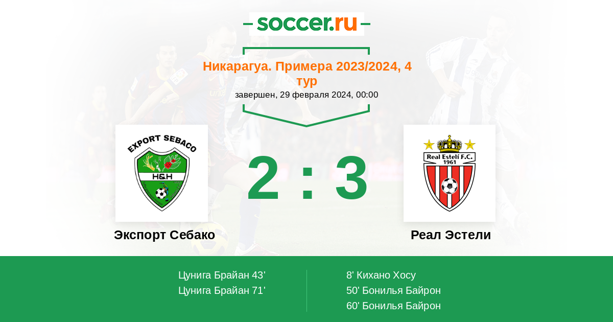 | Экспорт Себако | Реал Эстели | |