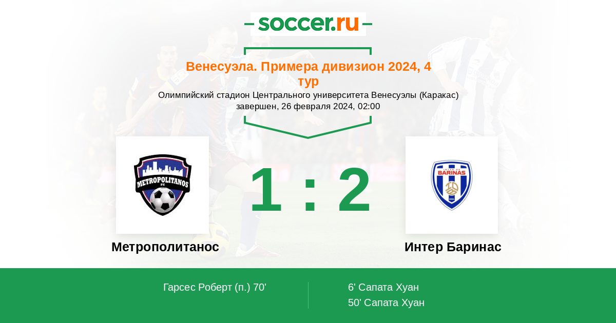 | Метрополитанос | Интер Баринас | |