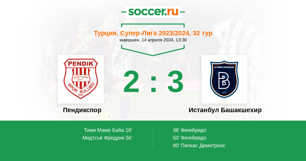 | Пендикспор | Истанбул Башакшехир | |