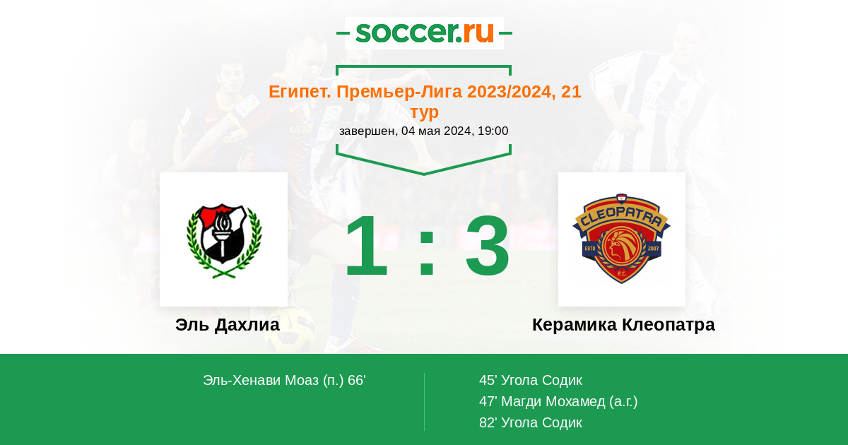 | Эль Дахлиа | 0:4 | 0:0 | 0:4 |