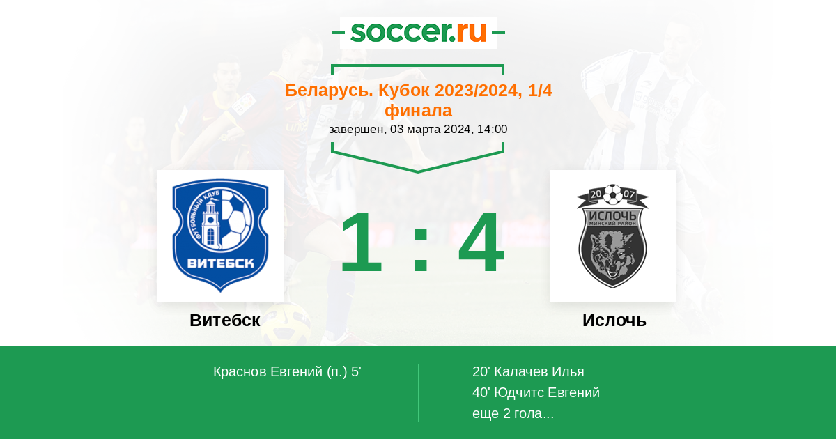 | Ислочь | 35:21 | 15:6 | 20:15 |