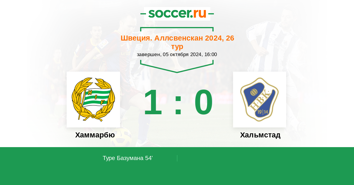 | Хаммарбю | 47:57 | 27:25 | 20:32 |