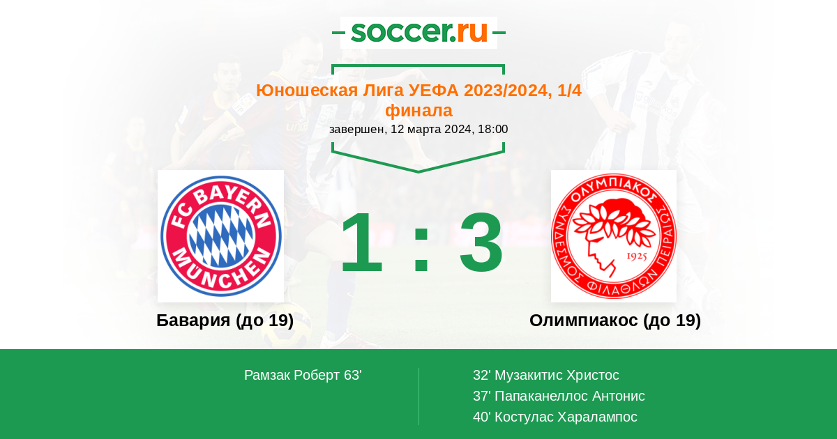| Бавария (до 19) | Олимпиакос (до 19) | |