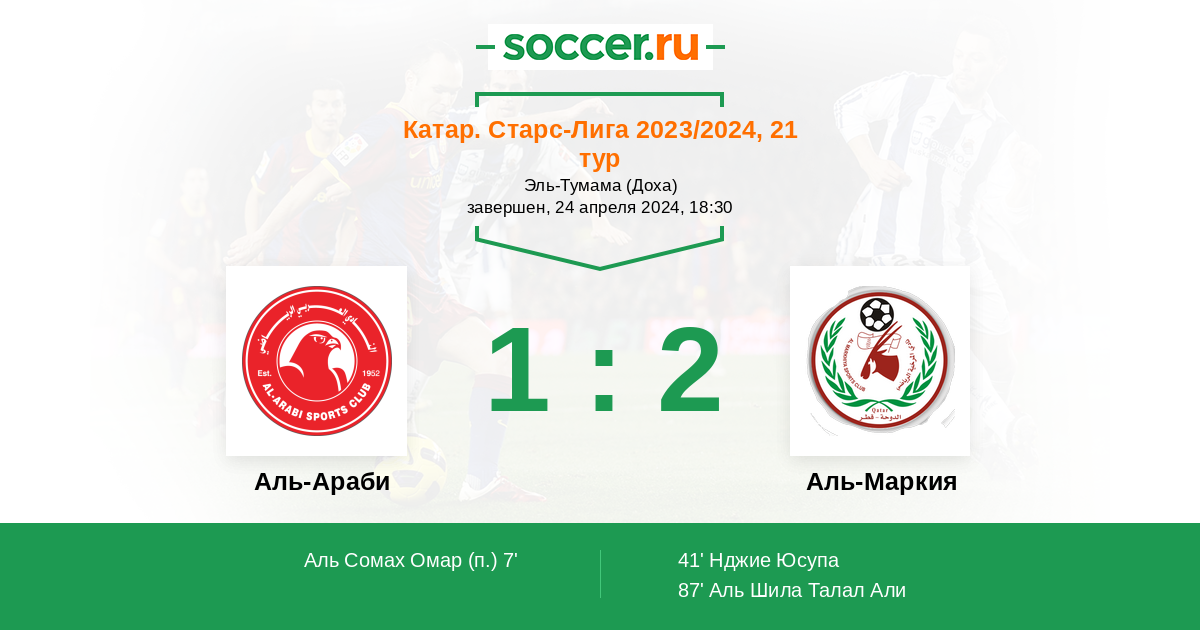 | Аль-Маркия | 2:12 | 1:7 | 1:5 |