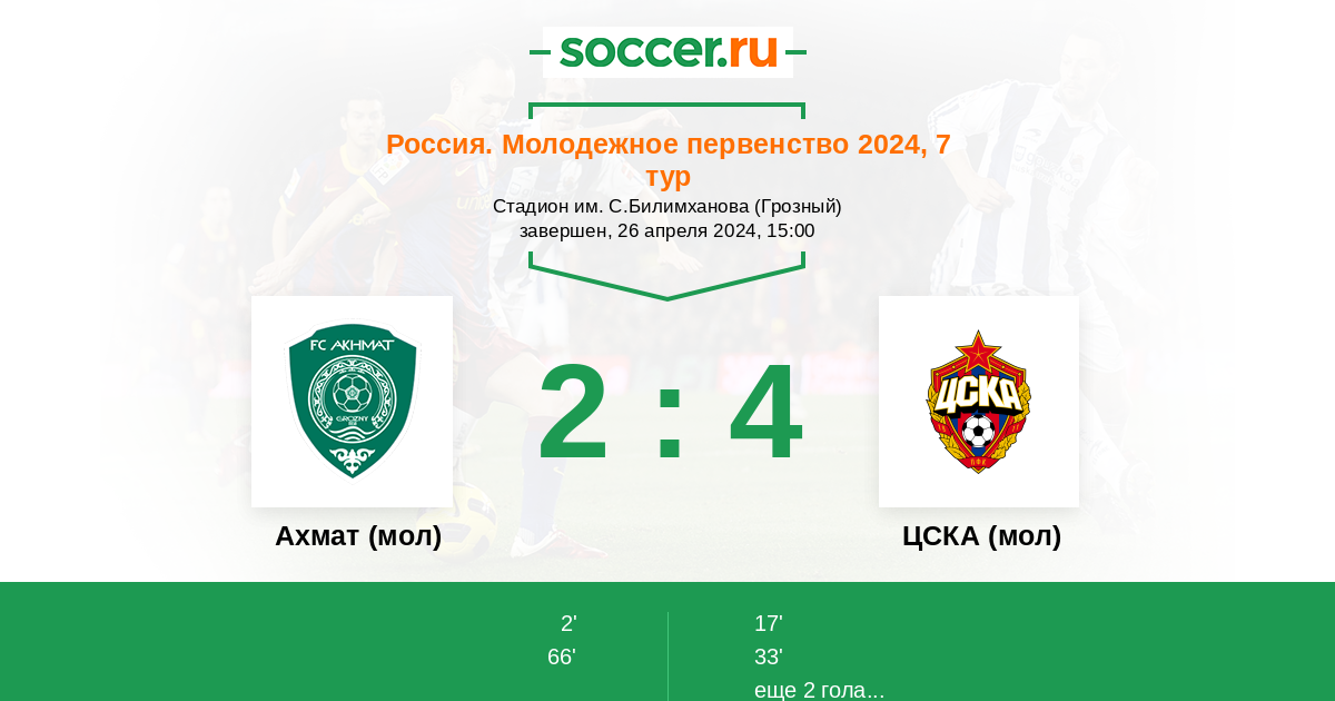 | Ахмат (мол) | ЦСКА (мол) | |