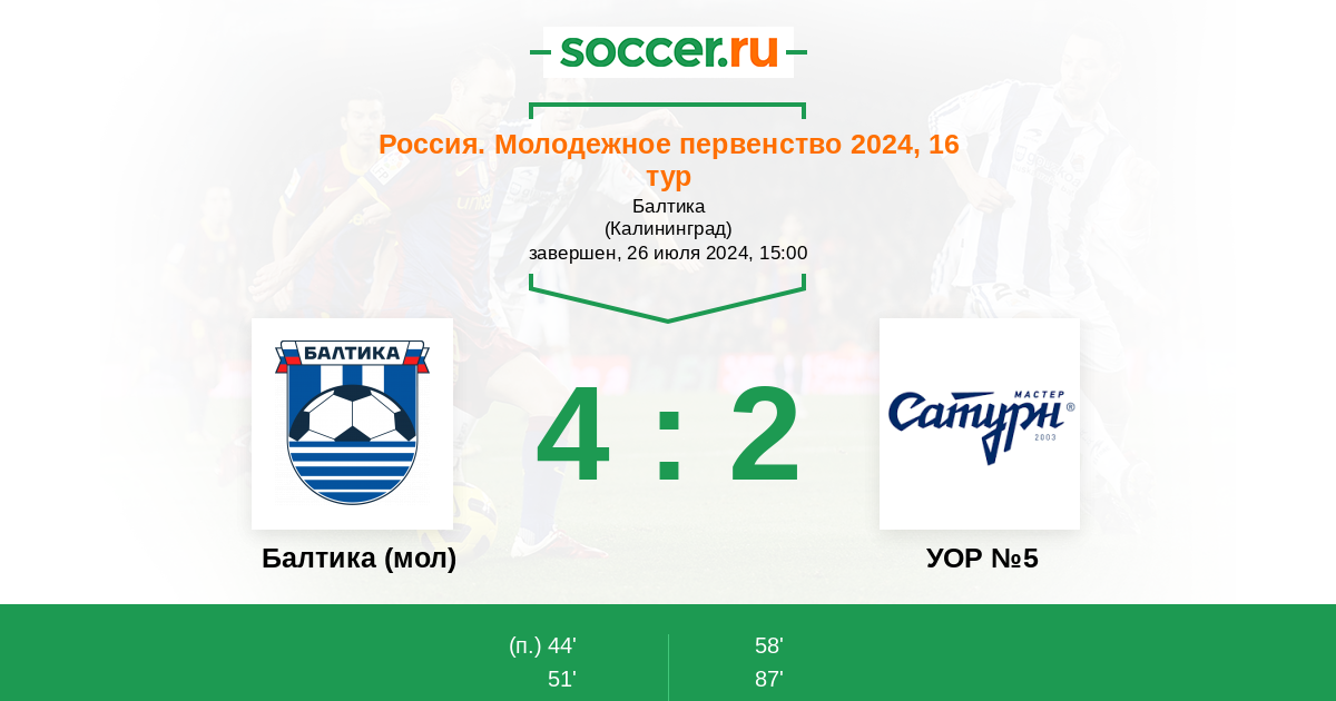 | Балтика (мол) | 2:3 | 0:0 | 2:3 |