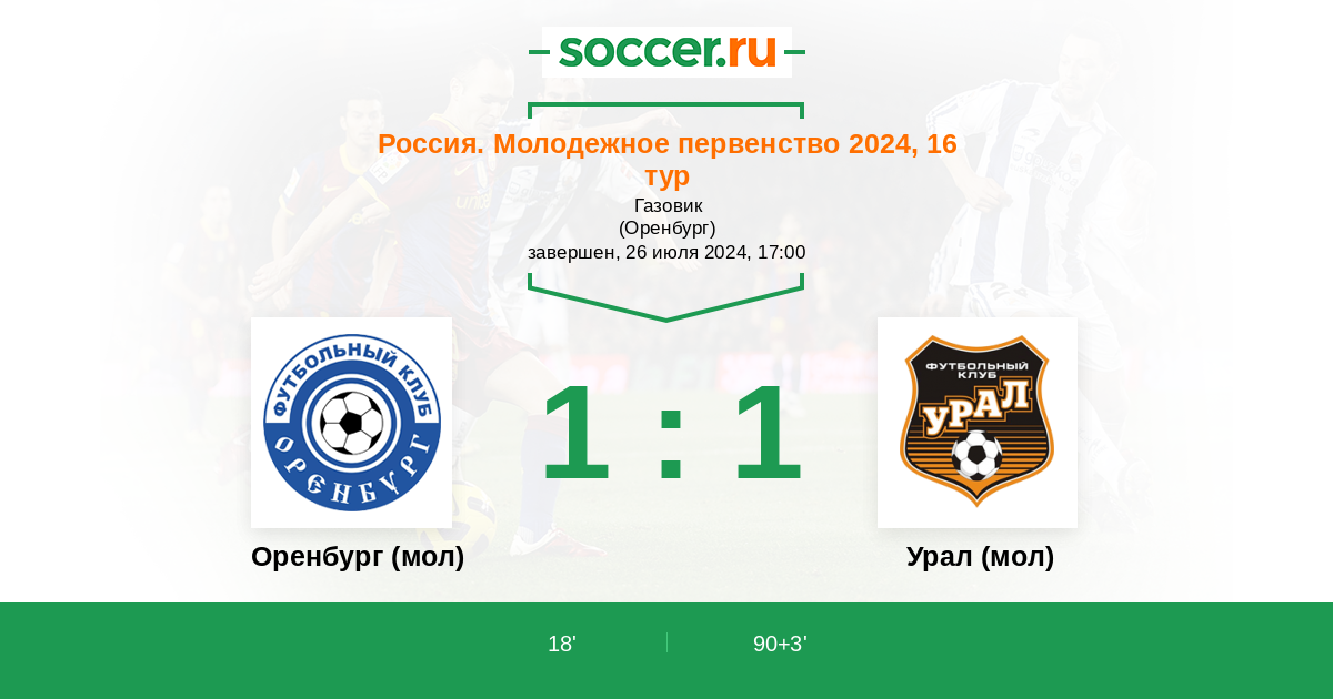 | Оренбург (мол) | 6:18 | 3:4 | 3:14 |