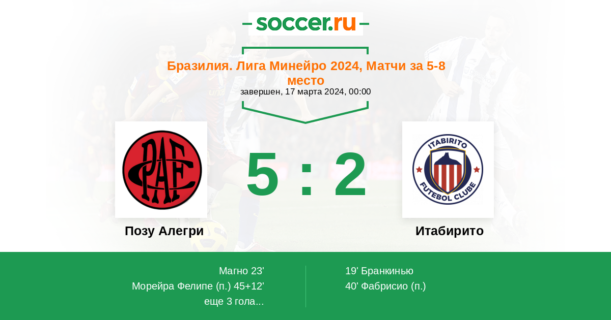 | Итабирито | 5:3 | 5:1 | 0:2 |