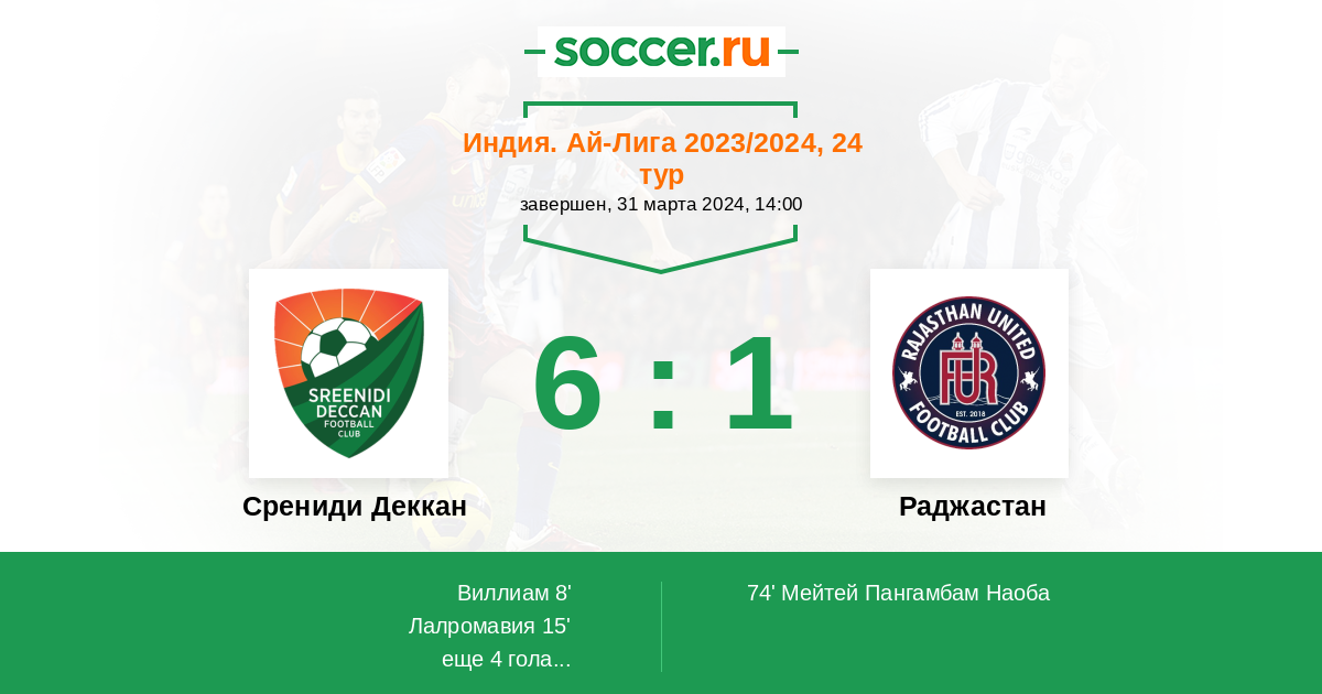 | Срениди Деккан | 9:6 | 5:3 | 4:3 |