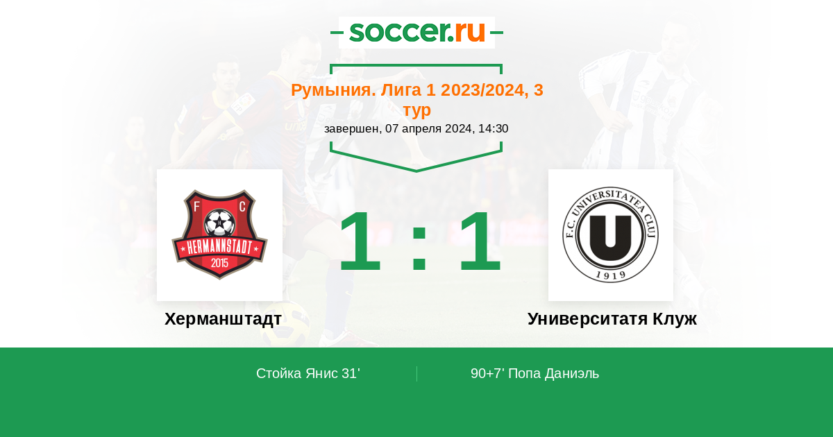 | Херманштадт | Университатя Клуж | |