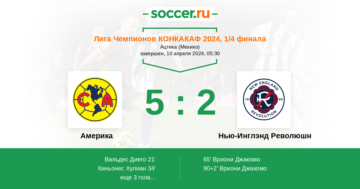 | Нью-Инглэнд Революшн | 0:4 | 0:4 | 0:0 |