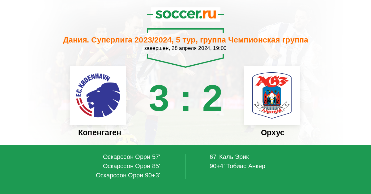| Фальк Расмус | 22 | 22 | Мортенсен Патрик |