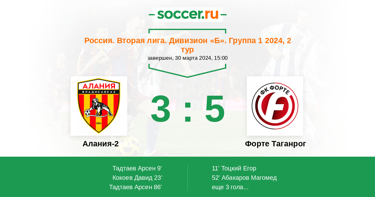 | Алания-2 | 1:24 | 1:10 | 0:14 |