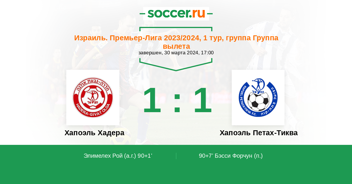 | Хапоэль Хадера | Хапоэль Петах-Тиква | |