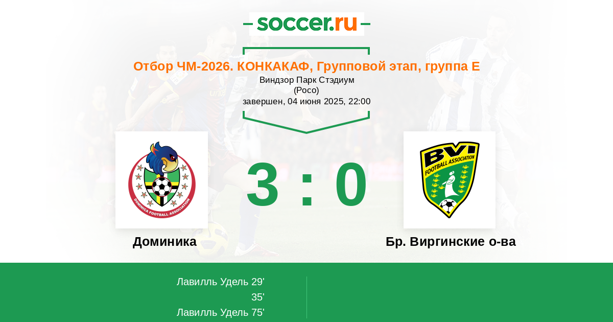 | Доминика | 3:2 | 0:0 | 3:2 |