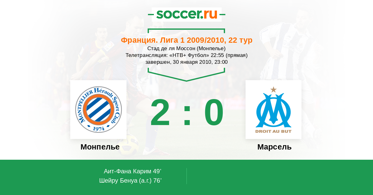 Монпелье, Стад де ля Моссон Телетрансляция: "НТВ+ Футбол" 22:55 (прямая)