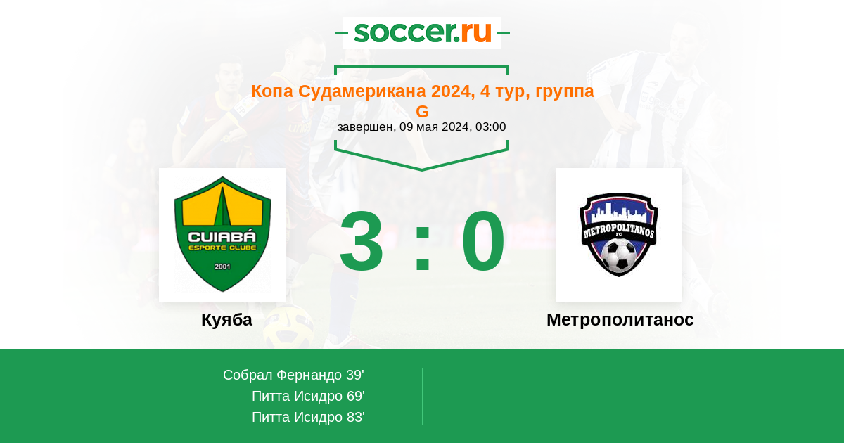 | Куяба | 2:0 | 0:0 | 2:0 |