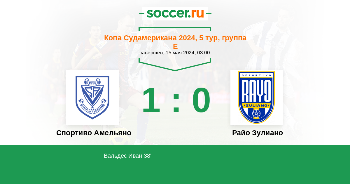 | Спортиво Амельяно | 4:0 | 0:0 | 4:0 |