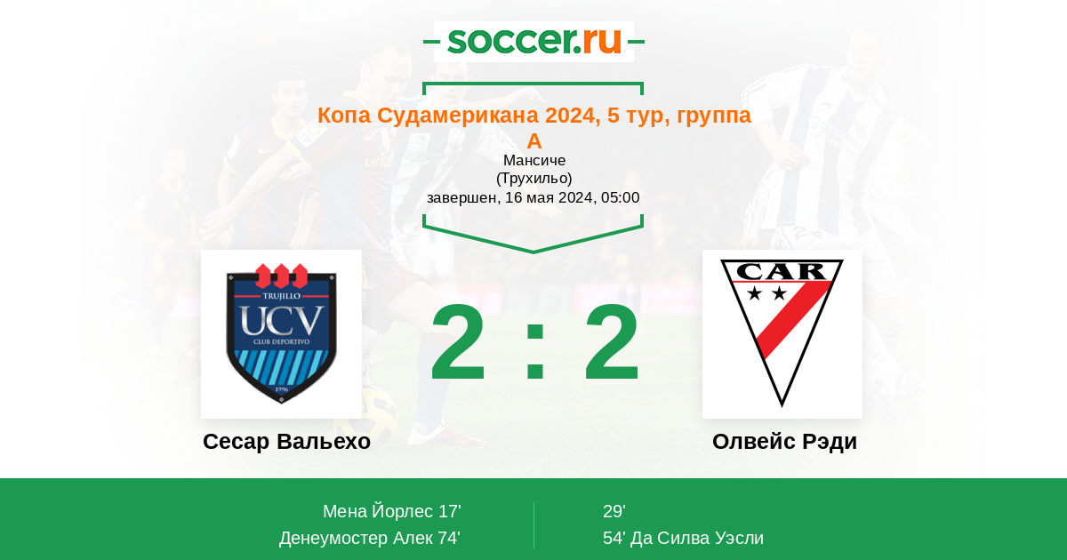 | Сесар Вальехо | 0:2 | 0:0 | 0:2 |
