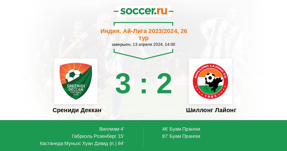 | Срениди Деккан | Шиллонг Лайонг | |