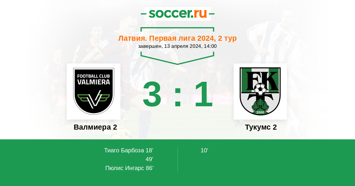 | Валмиера 2 | Тукумс 2 | |