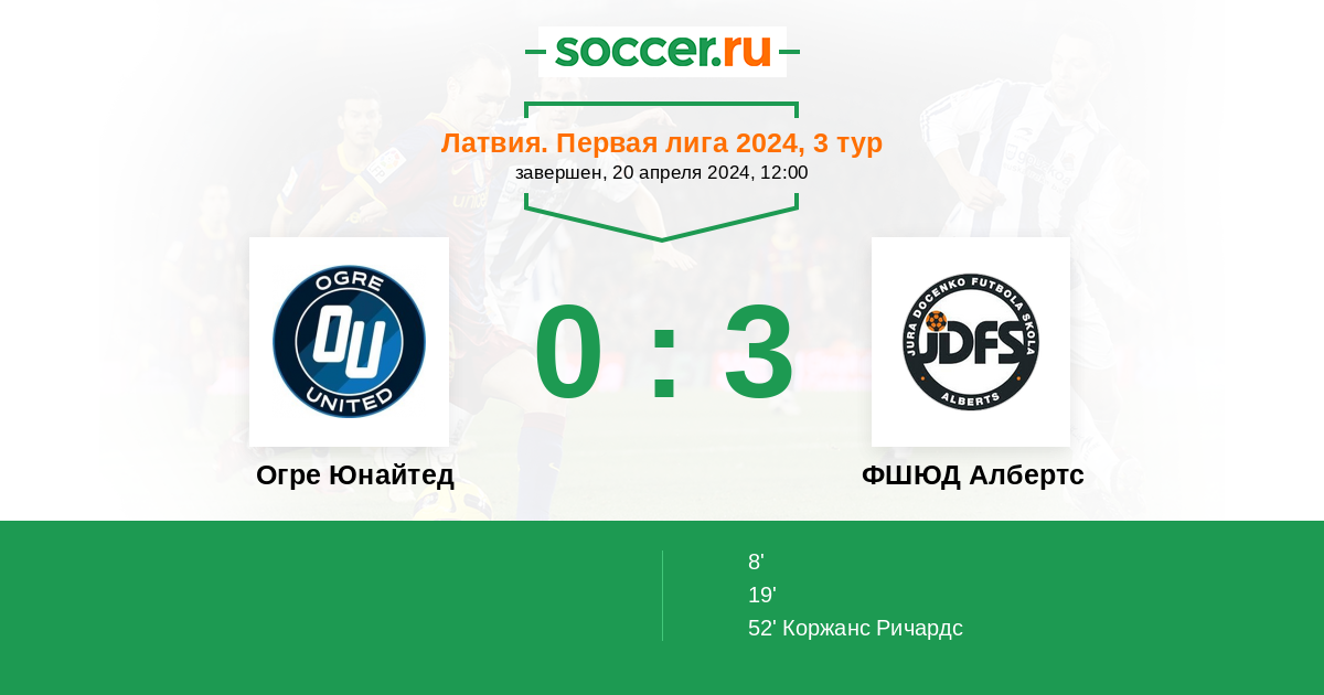 | Огре Юнайтед | ФШЮД Албертс | |