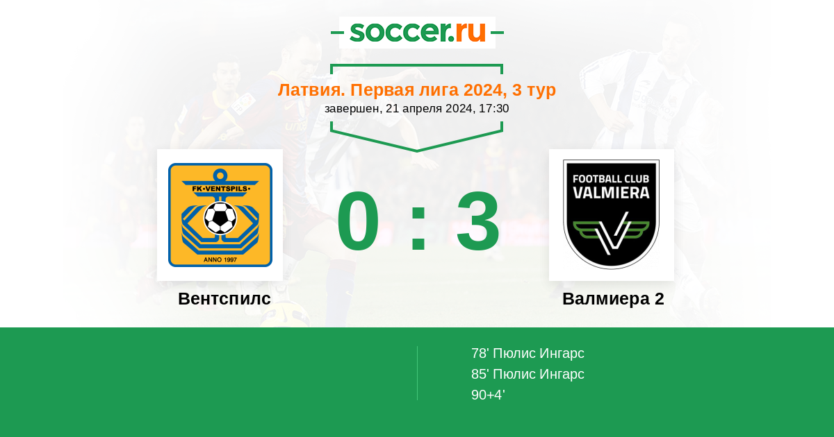 | Валмиера 2 | 1:3 | 1:3 | 0:0 |