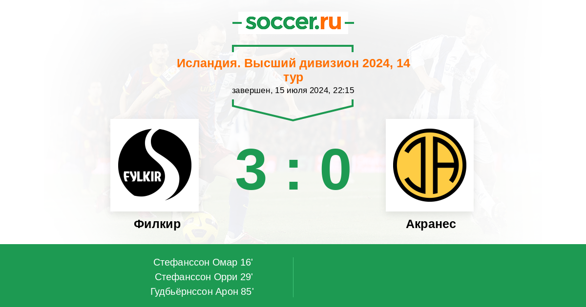 | Акранес | 59:44 | 31:22 | 28:22 |