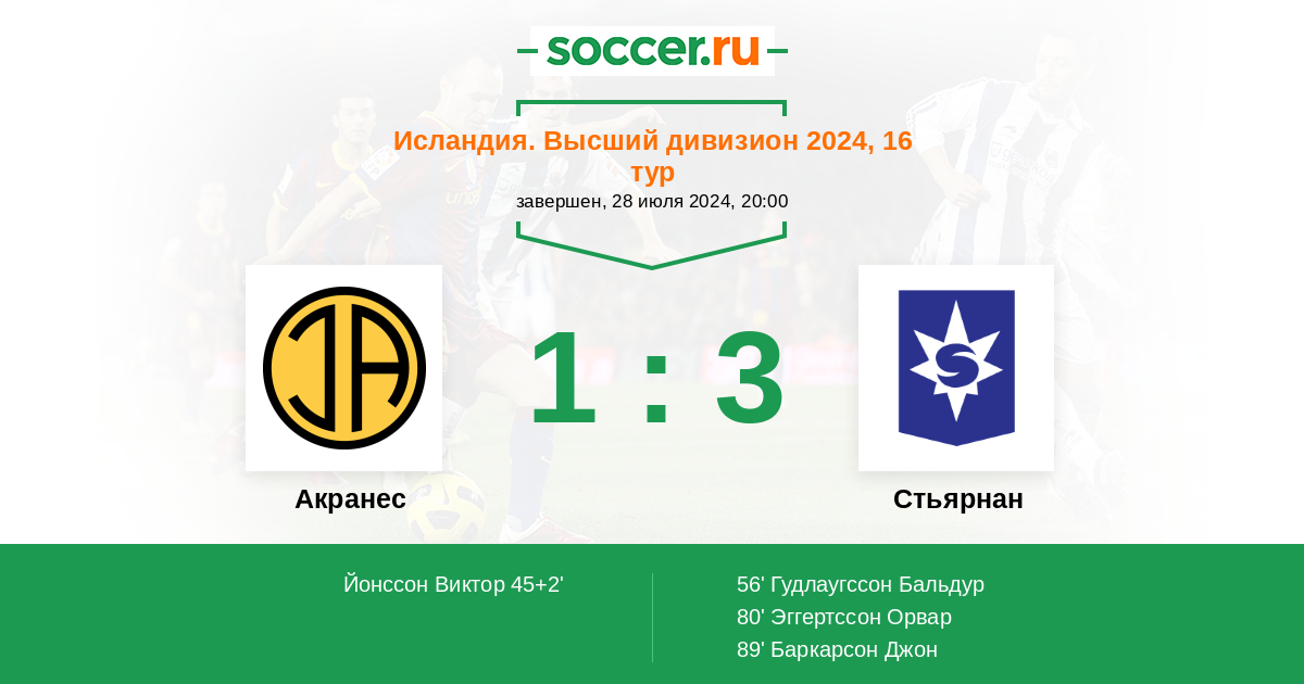| Акранес | Стьярнан | |