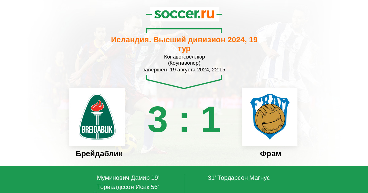 | Фьелдстед Дагур Эрн (1) | Лучшие бомбардиры | Сигурдссон Фрейр (1) |