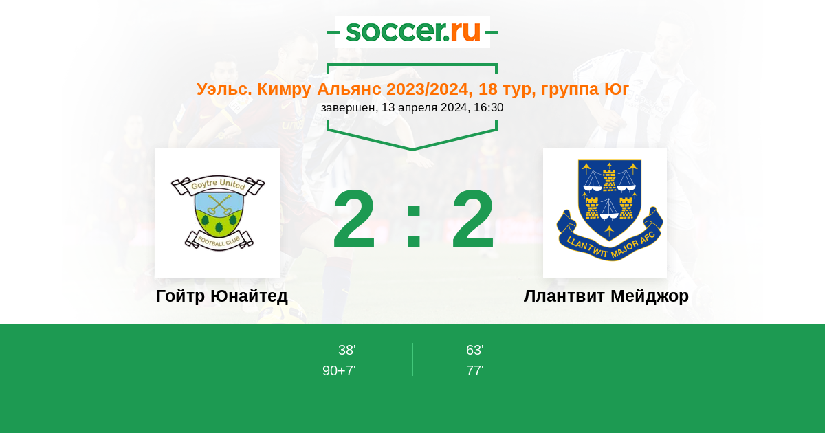 | Гойтр Юнайтед | Ллантвит Мейджор | |