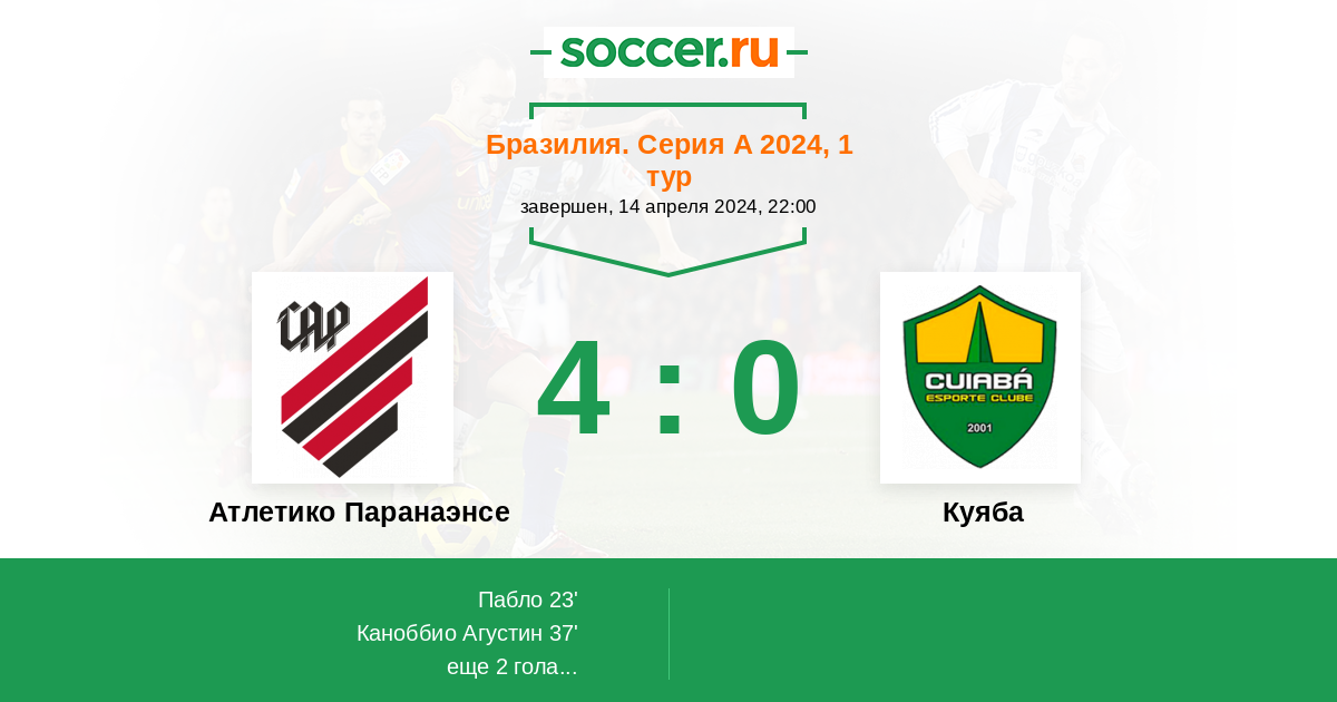 | Атлетико Паранаэнсе | 10:10 | 6:3 | 4:7 |